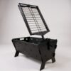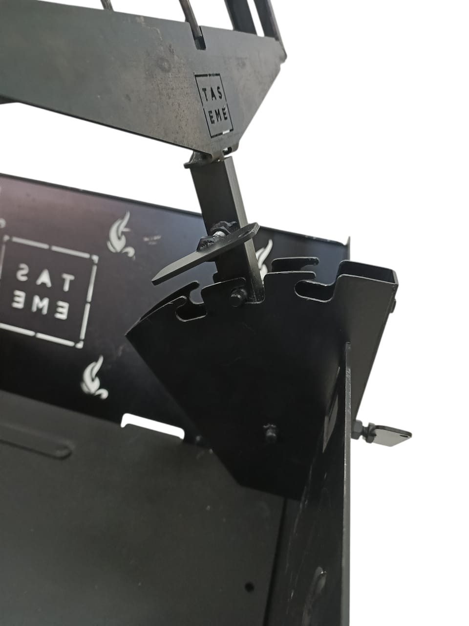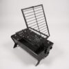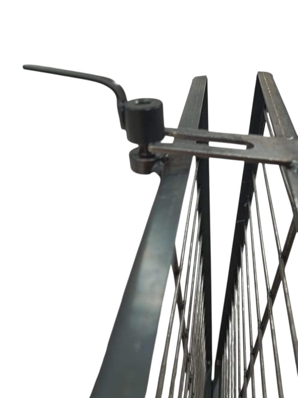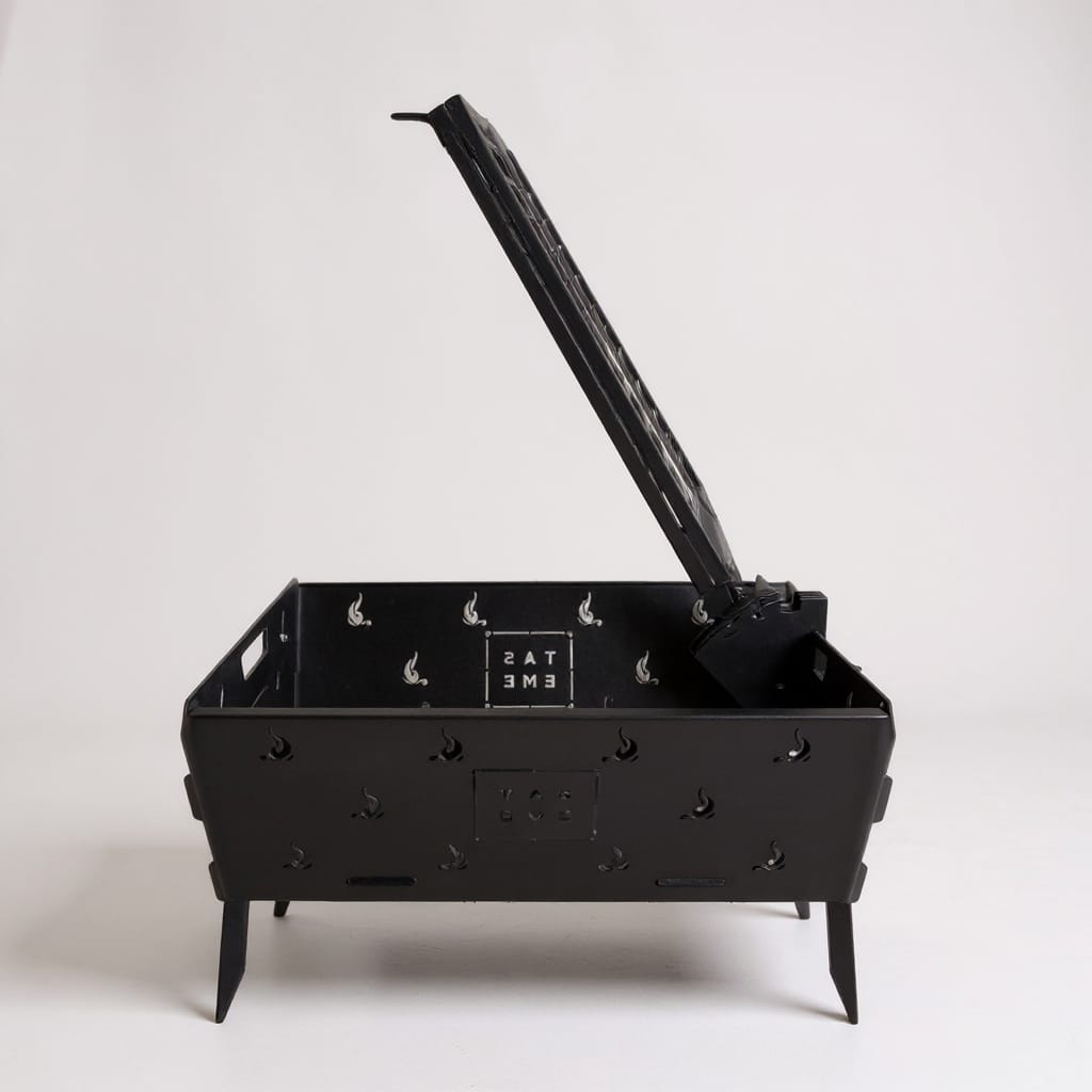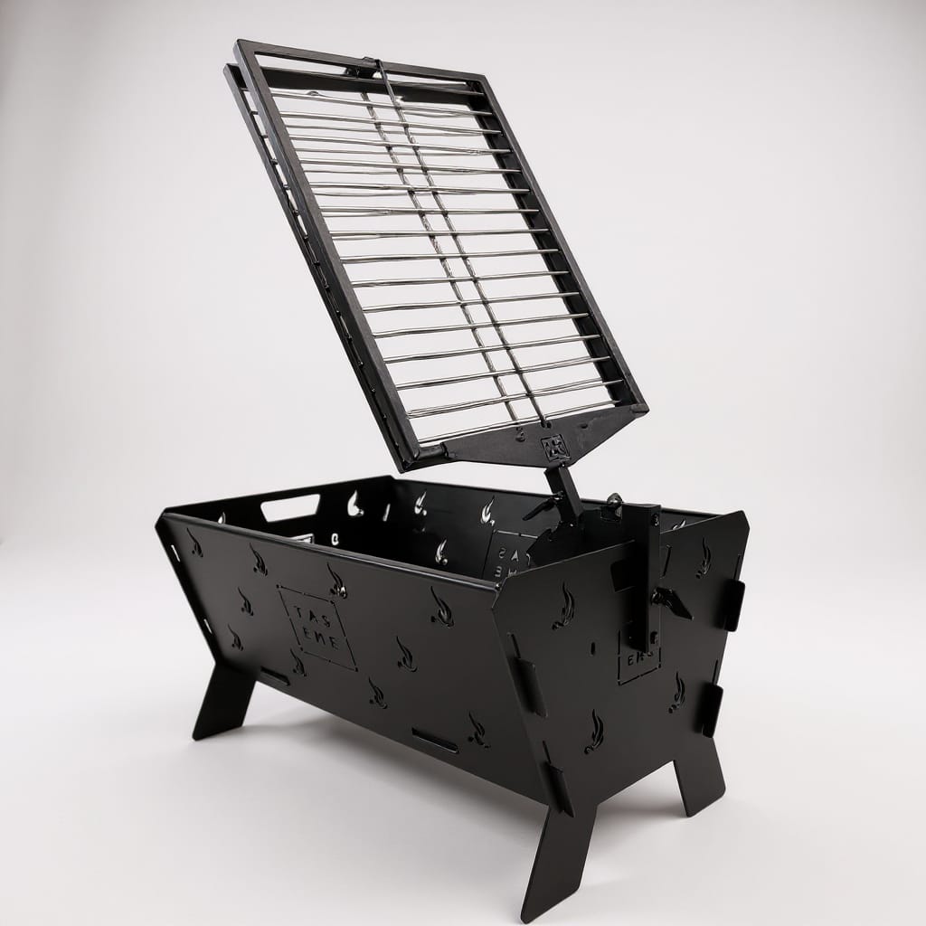 Cuenta con doble grilla tipo libro, que asegura una sujeción firme y una cocción uniforme en ambos lados. Su sistema giratorio con apertura superior facilita el giro y la manipulación sin perder estabilidad, mientras que el regulador de posición con tres niveles permite ajustar la distancia al fuego según el punto de cocción deseado.